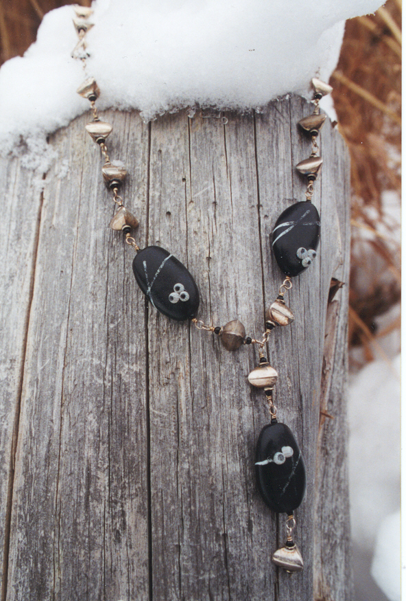 Material: Lamp Work Glass Beads by Kate Fowle, Sterling Beads and Wire, Onyx Beads |
