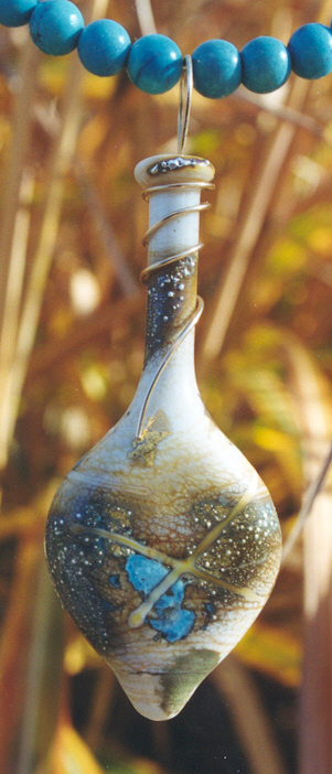 Material: Lamp Work Glass Bead by Kate Fowle 14 K Gold Wire and Sterling Silver Wire Torquise Beads |
