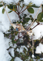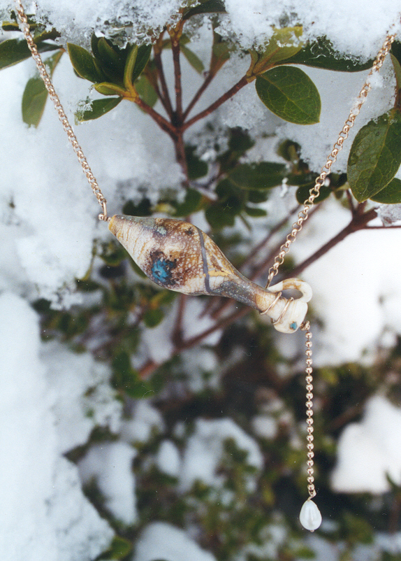 Material: Lamp Work Glass Bead by Kate Fowle 14 Gold Wire and Chain Freshwater Pearl |